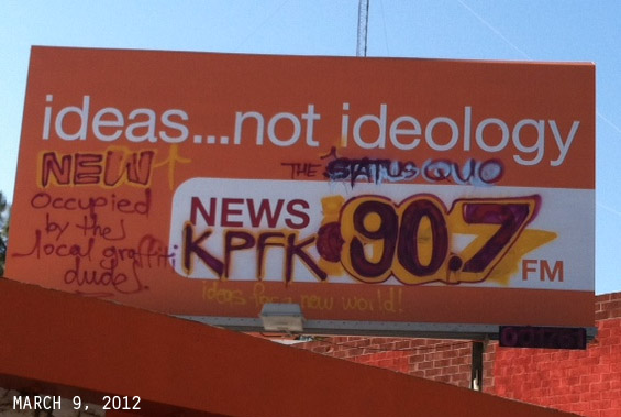 As I walked in today, I was alerted that someone had replaced the KPCC billboard with our own KPFK billboard. Didn’t know we had such a substantial advertising budget.